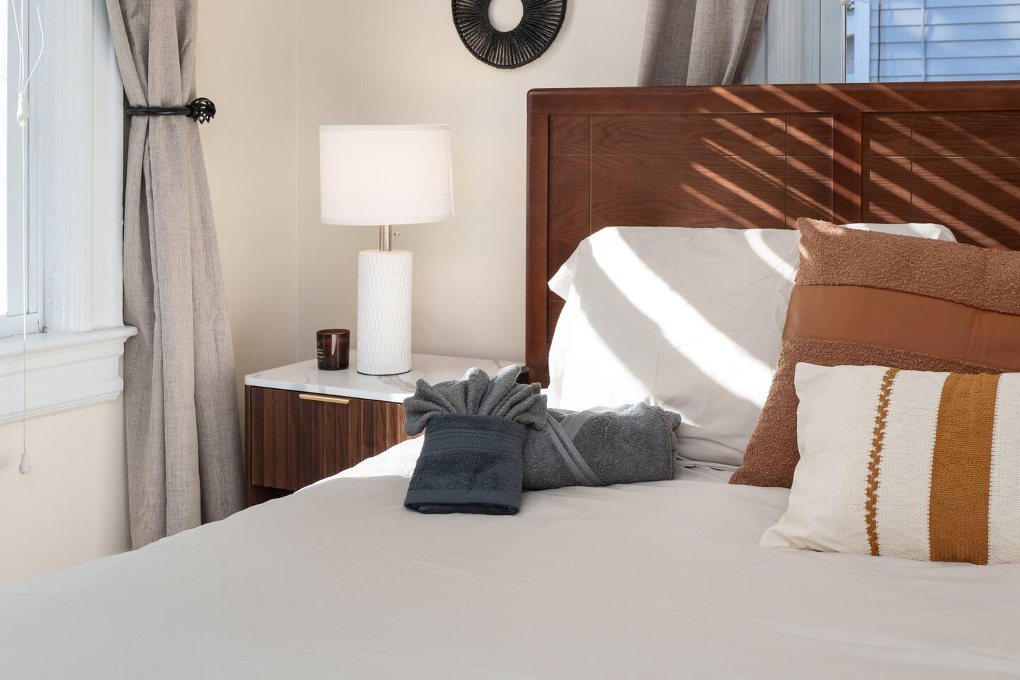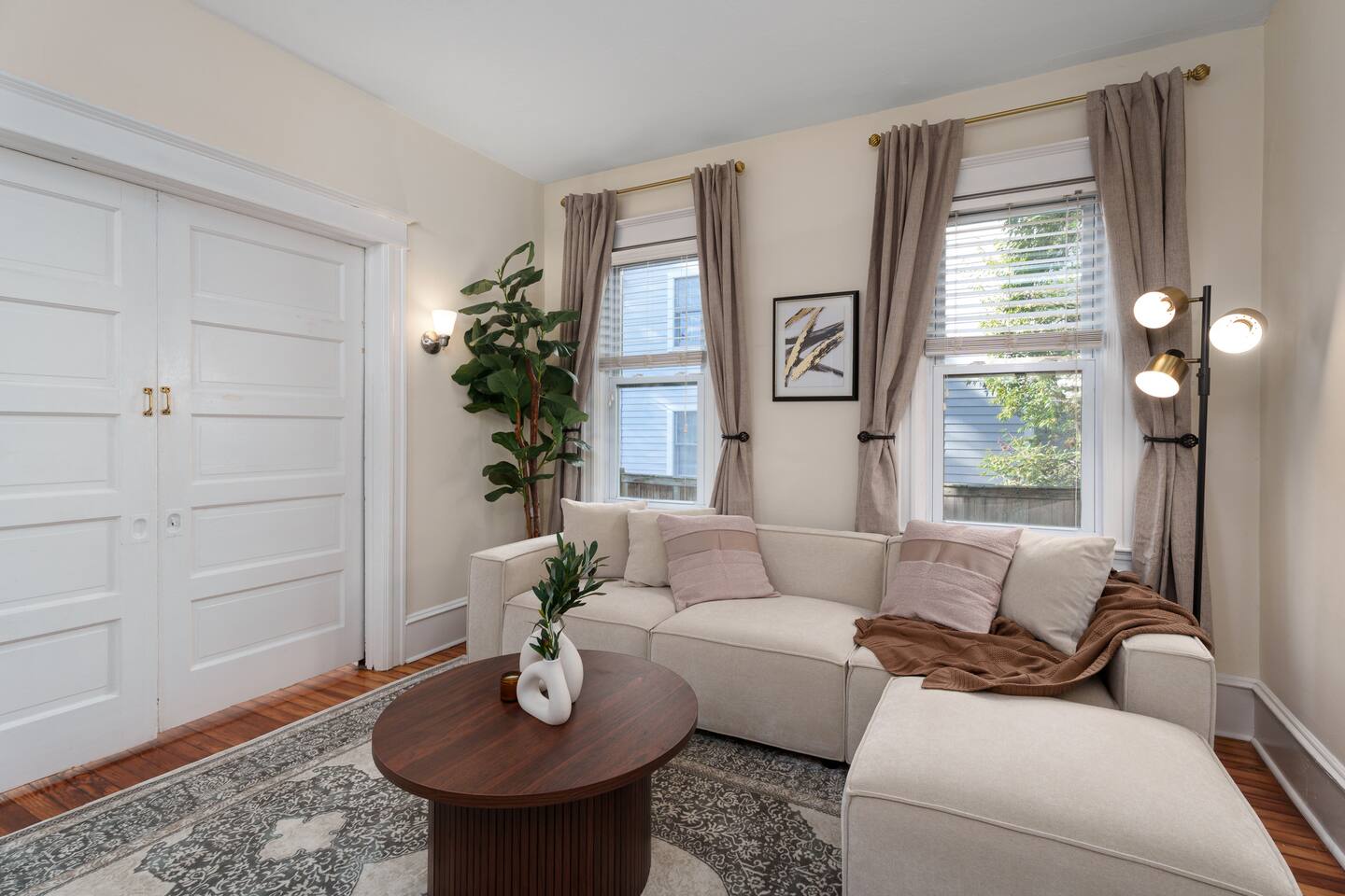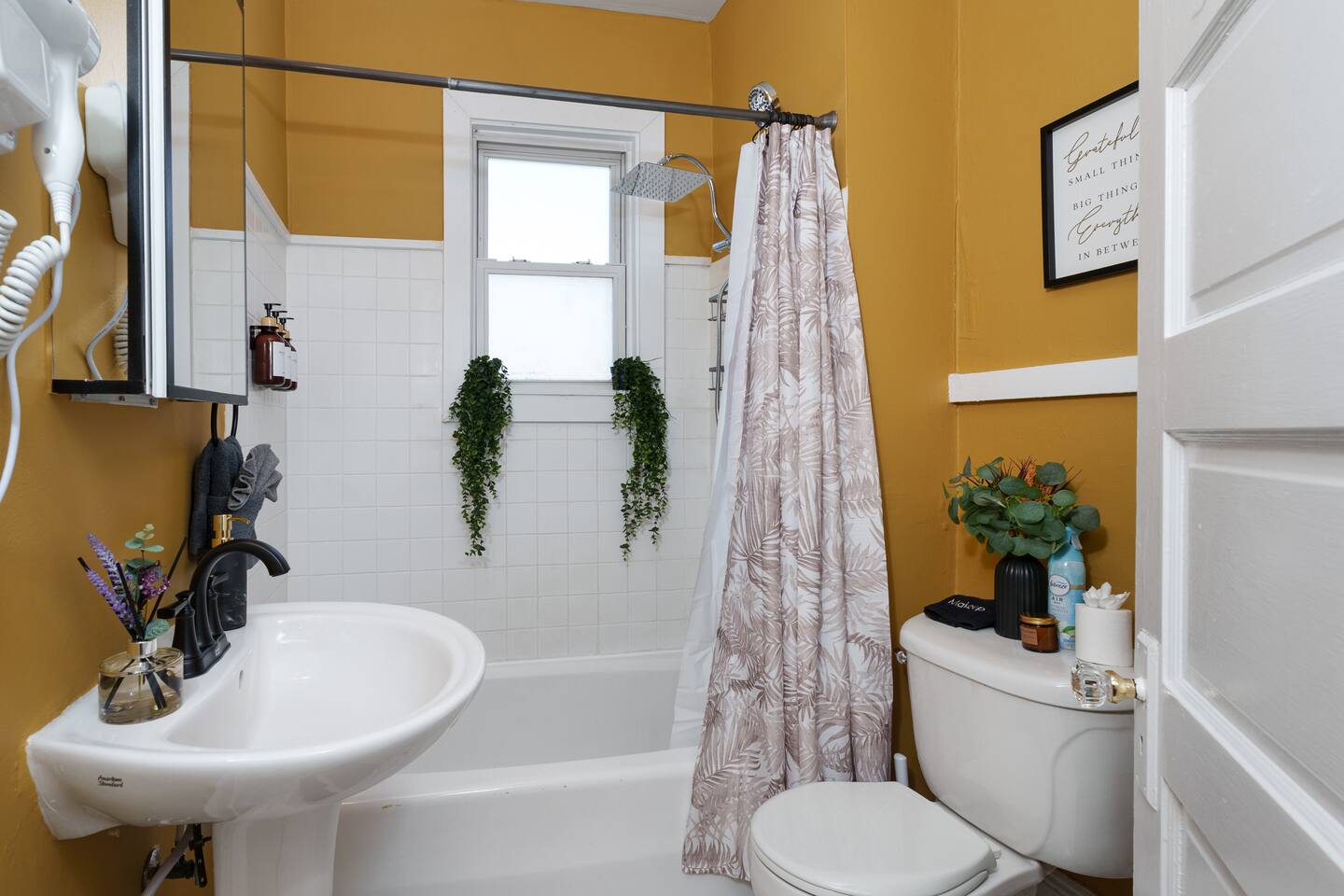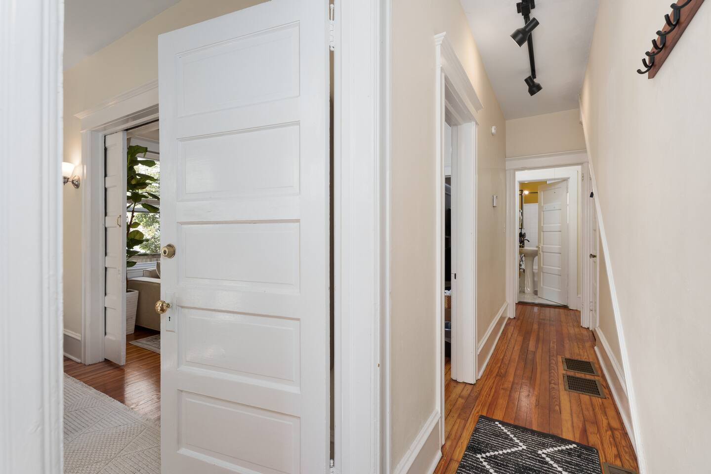 ✓ Complimentary High-Speed Wi-Fi ✓ Elegant Design & Comfortable Bedding ✓ Fully Equipped Chef’s Kitchen ✓ Premium Linens & Hotel-Quality Pillows ✓ HD Smart TVs with Netflix, Disney+, Hulu & HBO Max ✓ Dedicated Workstations & Laptop Desks ✓ Shared Washer/Dryer ✓ Parking Access for Up to 1 Vehicle This beautifully stylish 675 sq. ft. spacious first floor apartment, offering 1 large bedroom, 1 bathroom, and living room. Conveniently located just half a block from downtown Princeton, the apartment blends a mix of Modern-transitional and Boho character. The stylish living room and bedroom both feature a 55-inch Smart TV, perfect for cozy evenings. A short walk to a variety of local restaurants, shops, and stores—creates the ideal setting for both relaxation and entertainment. Layout & Sleeping Arrangements Large King bedroom, work desk, designer living room (seating for 3-4), modernized kitchen, and full bathroom. Additional Sleeping: Sofa and extra floor mattress accommodate up to 4 guests comfortably Amenities Included: ● Fresh premium 400-thread count sheets and luxury towels ● Body wash, shampoo, conditioner & other essentials ● Air conditioning & heat throughout ● Hairdryer, iron, ironing board ● Smart TVs with streaming access (Netflix, Disney+, Hulu, HBO Max) ● Coffee, sugar, and creamer provided ● Fully stocked kitchen for cooking and dining needs ● Driveway parking for 1 vehicle