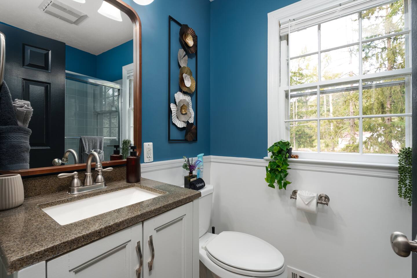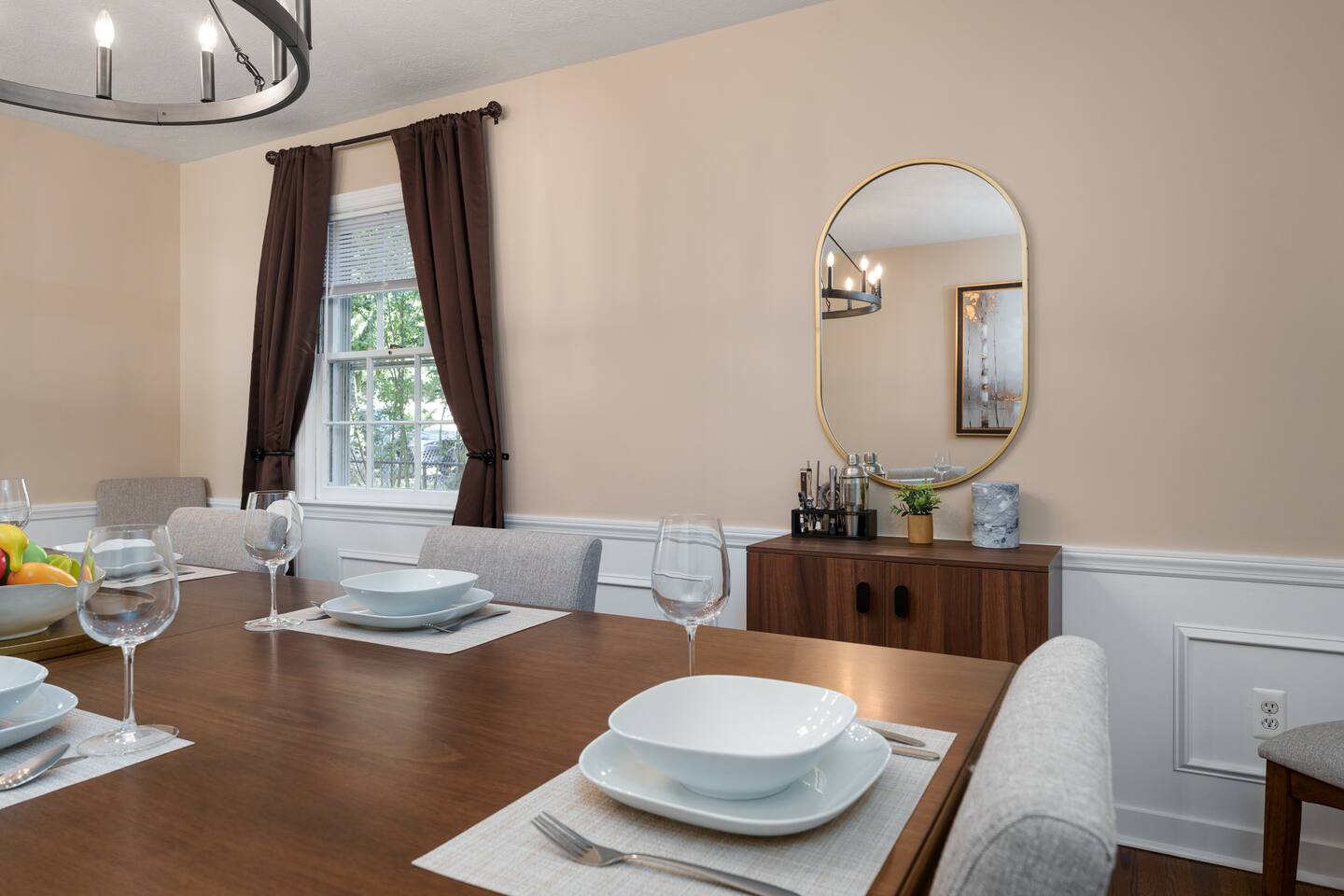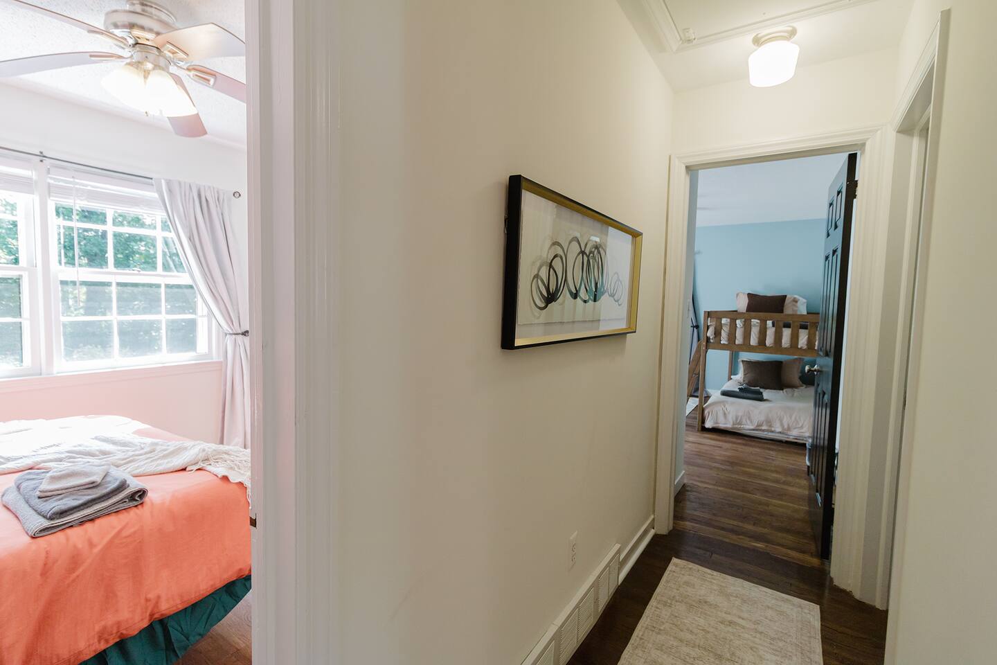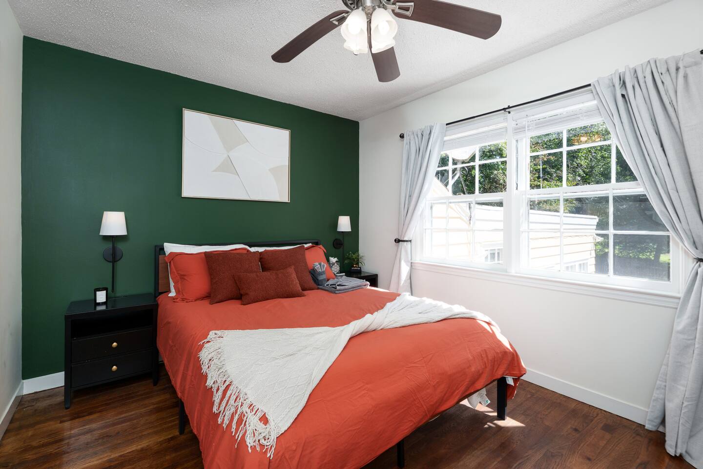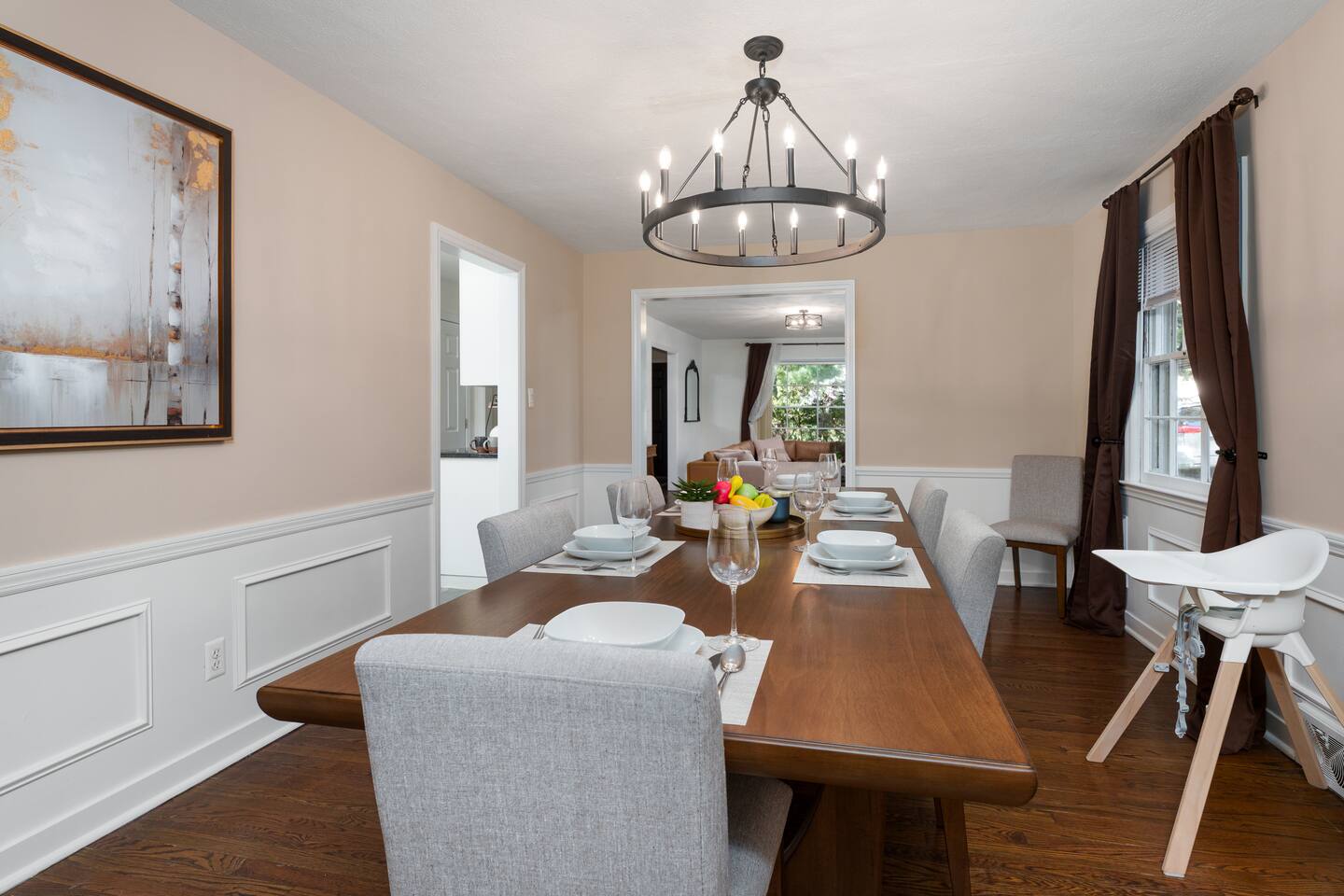 ✓ Complimentary High-Speed Wi-Fi ✓ Elegant Mid-Century Design & Comfortable Bedding ✓ Fully Equipped Chef’s Kitchen ✓ Expansive Gated Backyard with Firepit, Swing Set, BBQ & Patio Lounge ✓ Private Game Room with Pool Table, Basketball, Arcade & Karaoke ✓ Premium Linens & Hotel-Quality Pillows ✓ HD Smart TVs with Netflix, Disney+, Hulu & HBO Max ✓ Dedicated Workstations & Laptop Desks ✓ In-Home Washer/Dryer ✓ Driveway Parking for Up to 4 Vehicles This beautifully updated 2,150 sq. ft. home spans three levels, offering 4 bedrooms, 2.5 bathrooms, and multiple living spaces. Conveniently located just minutes from downtown Princeton and Princeton University, the home blends mid-century character with modern luxury. The stylish living room features a 55-inch Smart TV and an electric fireplace, perfect for cozy evenings. A private laundry room and gym area provide added convenience, while the spacious backyard—with patio seating, fire pit, swing set, and BBQ—creates the ideal setting for both relaxation and entertainment. Layout & Sleeping Arrangements Ground Floor: Private gym, laundry room, and garage access. First Floor: Designer living and dining room (seating for 8), modern kitchen, and expansive game room. Second Floor: Master suite with king bed, work desk, and full ensuite bath, Children’s themed bedroom with twin bunk + standalone twin, Additional queen bedroom, and Shared hallway full bath Third Floor: Two queen beds and a full-size crib Additional Sleeping: Sofa and extra floor mattress accommodate up to 12 guests comfortably Amenities Included: ● Fresh premium 400-thread count sheets and luxury towels ● Body wash, shampoo, conditioner & other essentials ● Air conditioning & heat throughout ● Hairdryer, iron, ironing board ● Smart TVs with streaming access (Netflix, Disney+, Hulu, HBO Max) ● Coffee, sugar, and creamer provided ● Fully stocked kitchen for cooking and dining needs ● Driveway parking for 4 vehicles