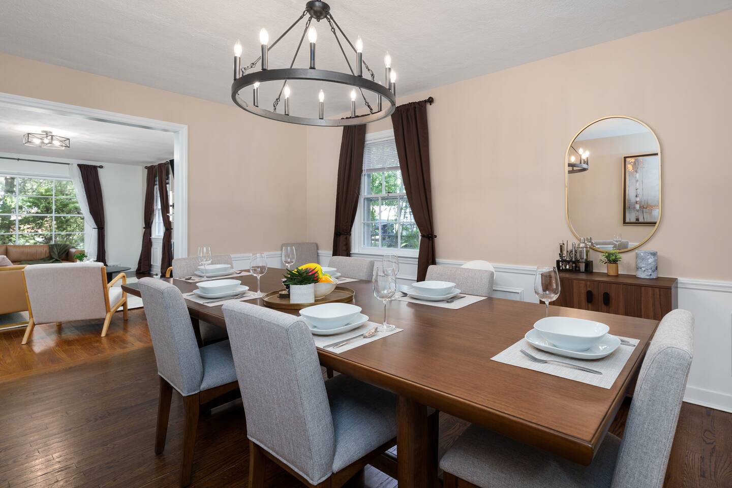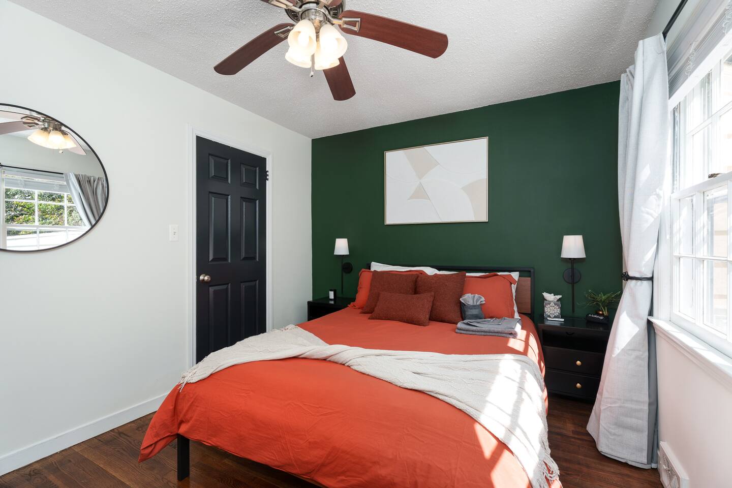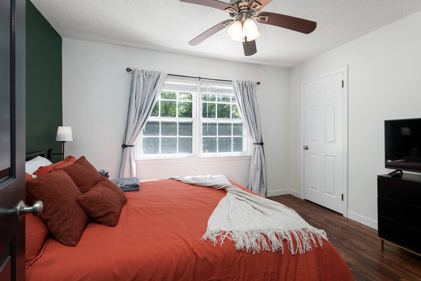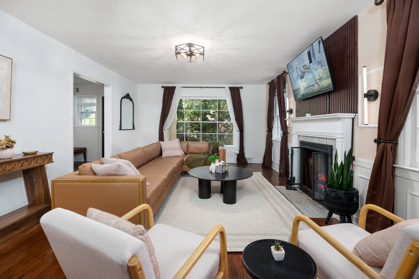 ✓ Complimentary High-Speed Wi-Fi ✓ Elegant Mid-Century Design & Comfortable Bedding ✓ Fully Equipped Chef’s Kitchen ✓ Expansive Gated Backyard with Firepit, Swing Set, BBQ & Patio Lounge ✓ Private Game Room with Pool Table, Basketball, Arcade & Karaoke ✓ Premium Linens & Hotel-Quality Pillows ✓ HD Smart TVs with Netflix, Disney+, Hulu & HBO Max ✓ Dedicated Workstations & Laptop Desks ✓ In-Home Washer/Dryer ✓ Driveway Parking for Up to 4 Vehicles This beautifully updated 2,150 sq. ft. home spans three levels, offering 4 bedrooms, 2.5 bathrooms, and multiple living spaces. Conveniently located just minutes from downtown Princeton and Princeton University, the home blends mid-century character with modern luxury. The stylish living room features a 55-inch Smart TV and an electric fireplace, perfect for cozy evenings. A private laundry room and gym area provide added convenience, while the spacious backyard—with patio seating, fire pit, swing set, and BBQ—creates the ideal setting for both relaxation and entertainment. Layout & Sleeping Arrangements Ground Floor: Private gym, laundry room, and garage access. First Floor: Designer living and dining room (seating for 8), modern kitchen, and expansive game room. Second Floor: Master suite with king bed, work desk, and full ensuite bath, Children’s themed bedroom with twin bunk + standalone twin, Additional queen bedroom, and Shared hallway full bath Third Floor: Two queen beds and a full-size crib Additional Sleeping: Sofa and extra floor mattress accommodate up to 12 guests comfortably Amenities Included: ● Fresh premium 400-thread count sheets and luxury towels ● Body wash, shampoo, conditioner & other essentials ● Air conditioning & heat throughout ● Hairdryer, iron, ironing board ● Smart TVs with streaming access (Netflix, Disney+, Hulu, HBO Max) ● Coffee, sugar, and creamer provided ● Fully stocked kitchen for cooking and dining needs ● Driveway parking for 4 vehicles