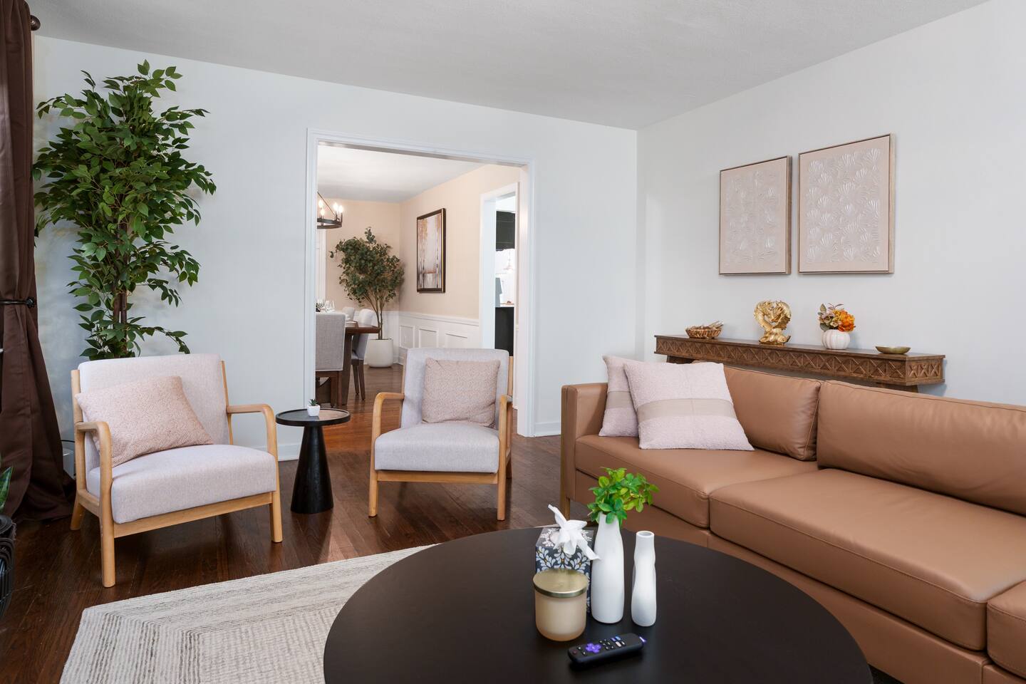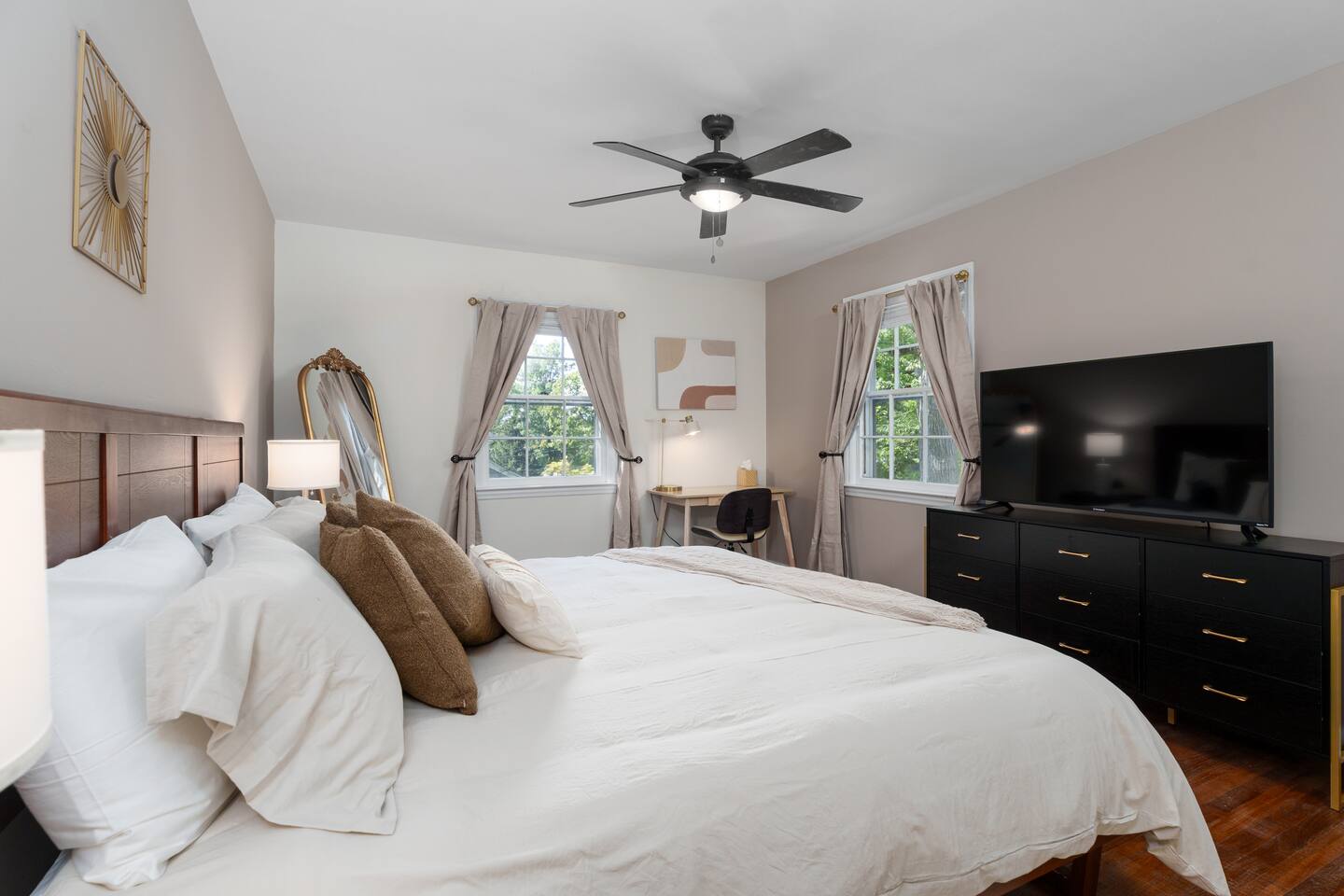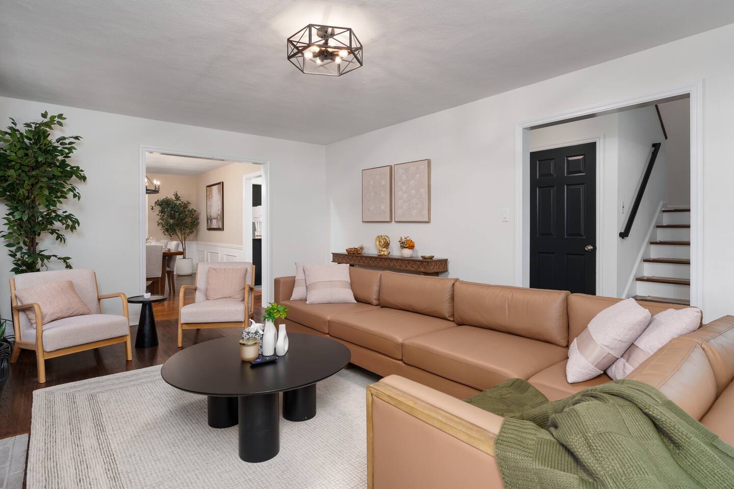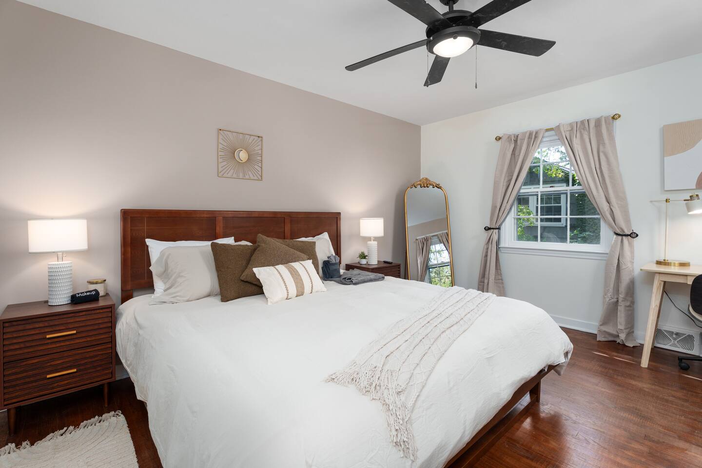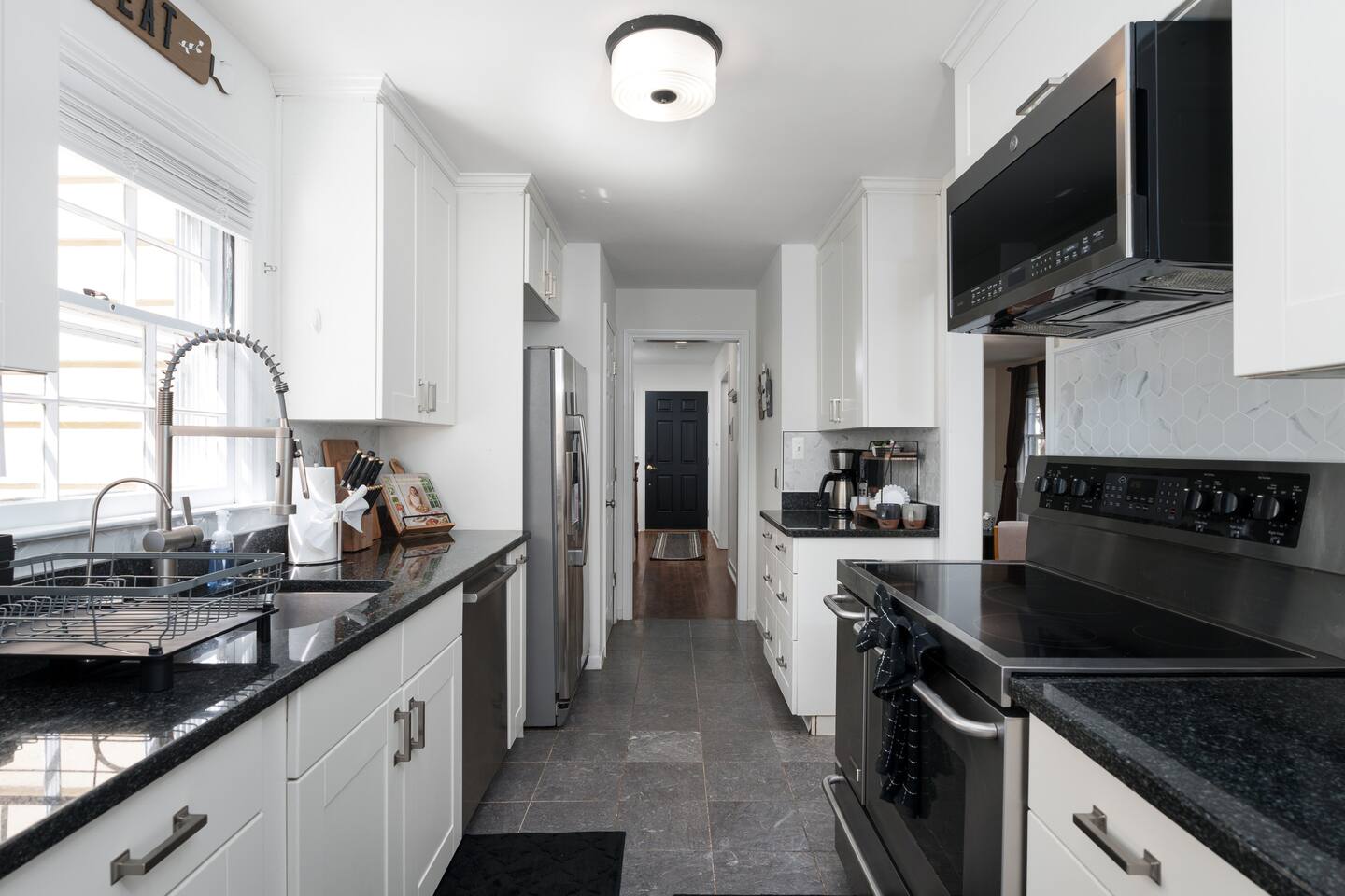 ✓ Complimentary High-Speed Wi-Fi ✓ Elegant Mid-Century Design & Comfortable Bedding ✓ Fully Equipped Chef’s Kitchen ✓ Expansive Gated Backyard with Firepit, Swing Set, BBQ & Patio Lounge ✓ Private Game Room with Pool Table, Basketball, Arcade & Karaoke ✓ Premium Linens & Hotel-Quality Pillows ✓ HD Smart TVs with Netflix, Disney+, Hulu & HBO Max ✓ Dedicated Workstations & Laptop Desks ✓ In-Home Washer/Dryer ✓ Driveway Parking for Up to 4 Vehicles This beautifully updated 2,150 sq. ft. home spans three levels, offering 4 bedrooms, 2.5 bathrooms, and multiple living spaces. Conveniently located just minutes from downtown Princeton and Princeton University, the home blends mid-century character with modern luxury. The stylish living room features a 55-inch Smart TV and an electric fireplace, perfect for cozy evenings. A private laundry room and gym area provide added convenience, while the spacious backyard—with patio seating, fire pit, swing set, and BBQ—creates the ideal setting for both relaxation and entertainment. Layout & Sleeping Arrangements Ground Floor: Private gym, laundry room, and garage access. First Floor: Designer living and dining room (seating for 8), modern kitchen, and expansive game room. Second Floor: Master suite with king bed, work desk, and full ensuite bath, Children’s themed bedroom with twin bunk + standalone twin, Additional queen bedroom, and Shared hallway full bath Third Floor: Two queen beds and a full-size crib Additional Sleeping: Sofa and extra floor mattress accommodate up to 12 guests comfortably Amenities Included: ● Fresh premium 400-thread count sheets and luxury towels ● Body wash, shampoo, conditioner & other essentials ● Air conditioning & heat throughout ● Hairdryer, iron, ironing board ● Smart TVs with streaming access (Netflix, Disney+, Hulu, HBO Max) ● Coffee, sugar, and creamer provided ● Fully stocked kitchen for cooking and dining needs ● Driveway parking for 4 vehicles