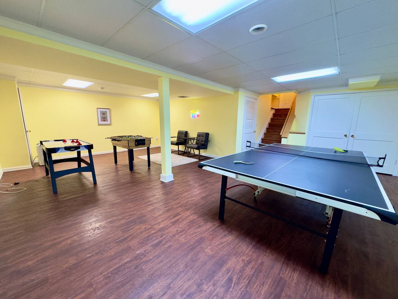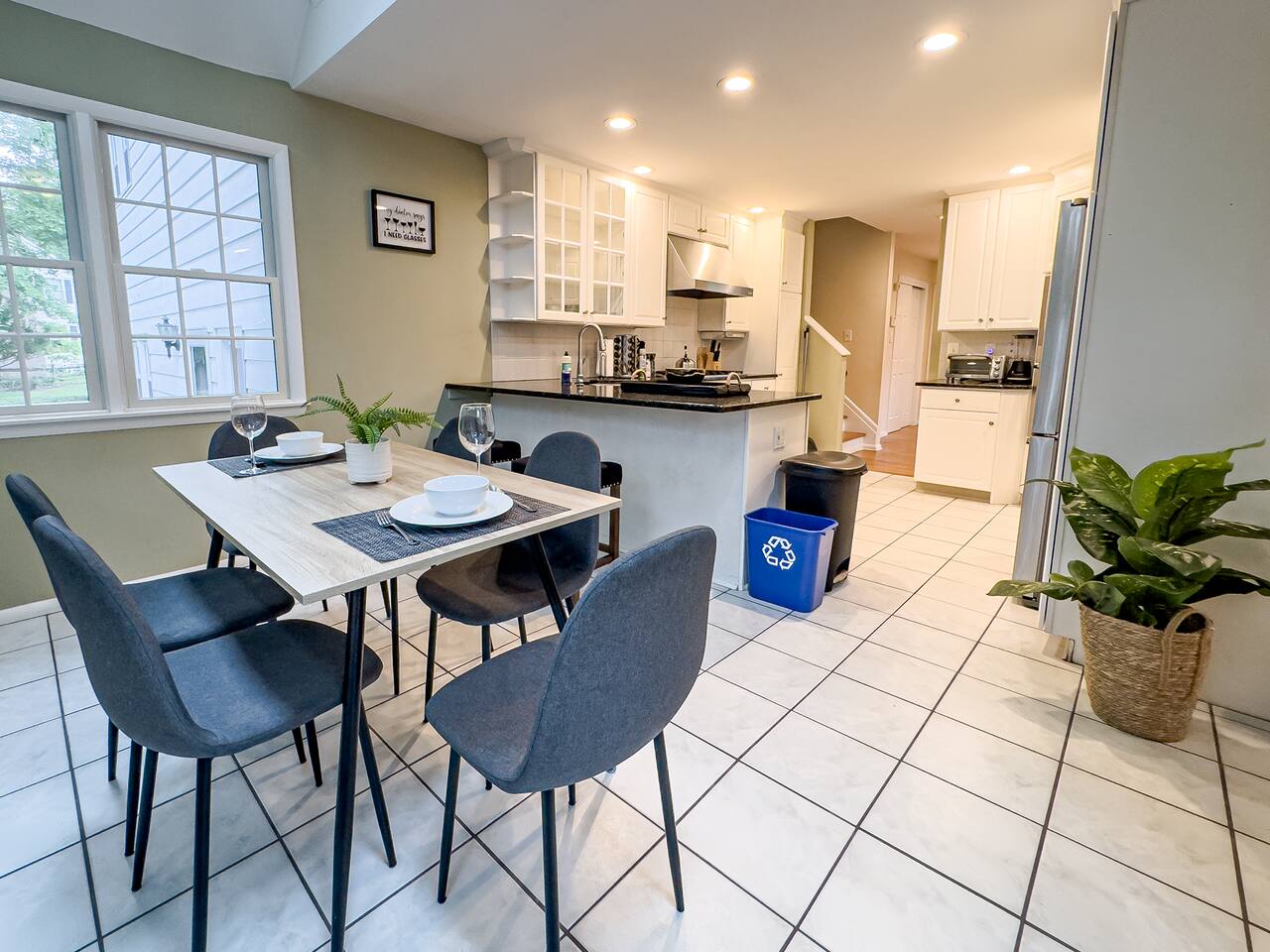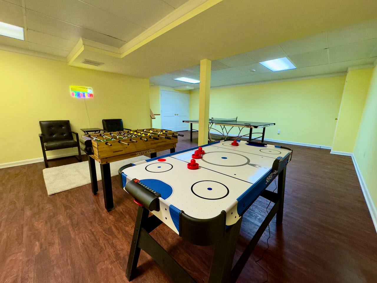 ✓ FREE HIGH-SPEED WIFI ✓ STYLISHLY LAVISH DECOR COMFORTABLE BEDDING ✓ FULL-SIZED CHEF'S KITCHEN ✓ LARGE BACKYARD W/PATIO SET, BBQ, BASKETBALL HOOP, AND FIREPIT ✓ EXCLUSIVE GAME ROOM W/PING PONG, AIR HOCKEY, AND MORE ✓ HIGH-END LINENS ✓ MULTIPLE HD SMART TV'S. ACCESS NETFLIX | DISNEY+| HULU | HBOMAX ✓ WORK AND LAPTOP DESKS ✓ WASHER/DRYER ✓ DRIVEWAY PARKING INCLUDED FOR UP TO 6 VEHICLES This 2,316 sqft home is 2 stories, 4 bedrooms, and three full baths. Minutes to downtown Princeton and University. Modern home with all newer appliances and high-end furniture. Comfortable Living room with 55-inch HD Smart TV. The washer and dryer are located on the first-floor for your convenience. Large backyard with patio set, BBQ, Basketball hoop, and fire pit for fun and relaxation. Game room lounge with ping-pong, air hockey, and multi-game tables. The first floor features a King size bedroom with office space, full bathroom, large dining area, and chef's kitchen. The second floor includes 3 more bedrooms featuring a master suite with King sized mattress, crib, and 2 more bedrooms with queen beds. 3 extra floor mattresses and a sofa for sleeping up to 16 people! Enjoy and relax in our beautiful home perfect for all visitors! WHAT IS INCLUDED: ● Fresh rich towels ● Fresh premium sheets ● Toilet paper/Paper towels ● Premium pillows ● Body wash/Shampoo/Conditioner ● High-speed Wi-Fi ● Smart TV with access to Netflix, Disney+, and Hulu ● Hairdryer ● Iron and ironing board ● Regular coffee, sugar, creamer ● Fully equipped kitchen for all of your cooking needs ● 6 Car driveway ● A/C & heat