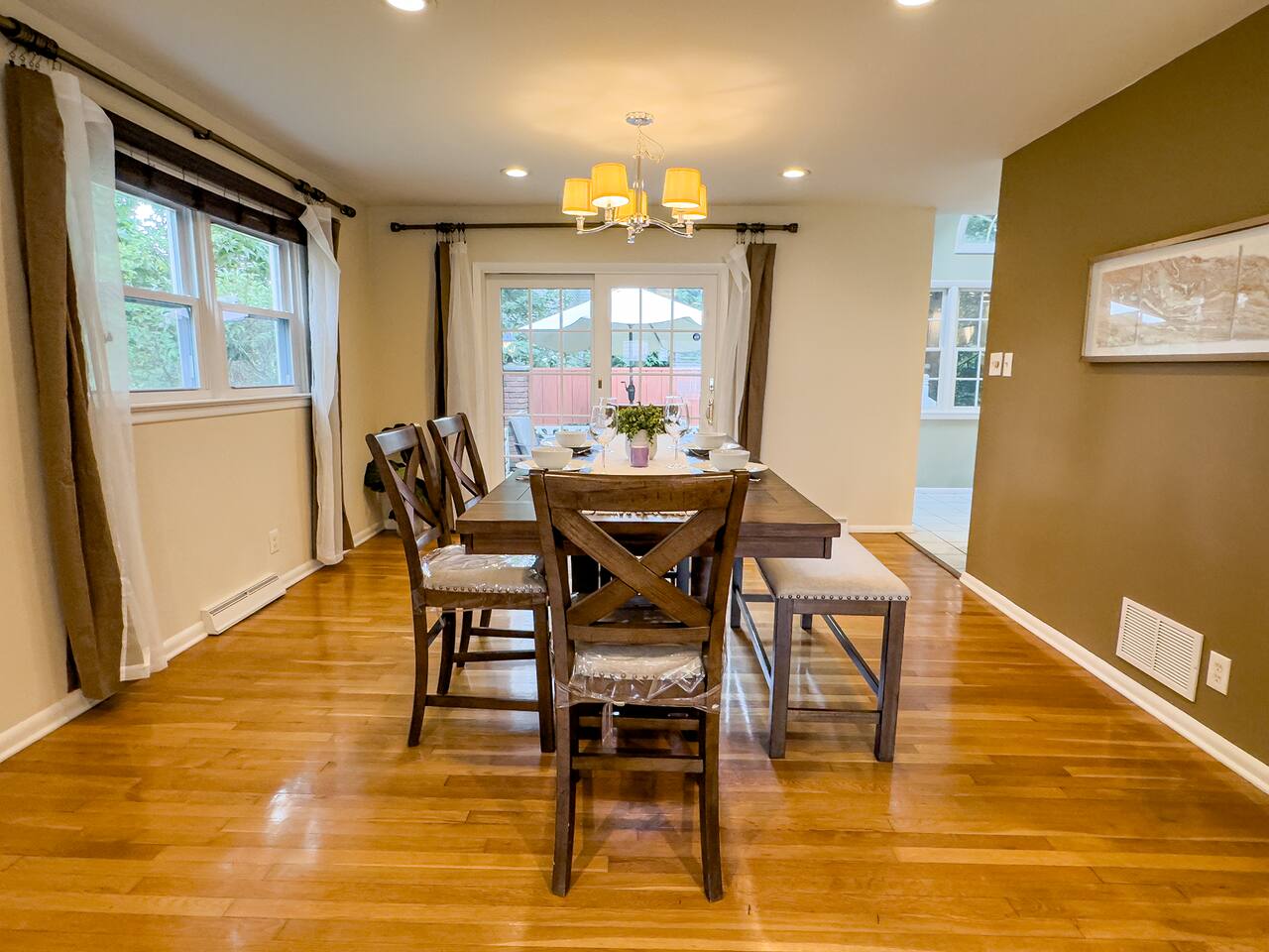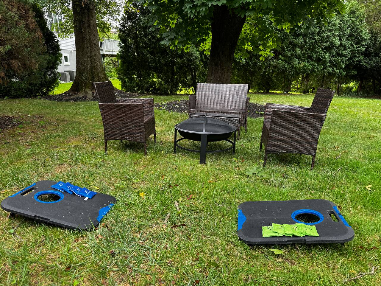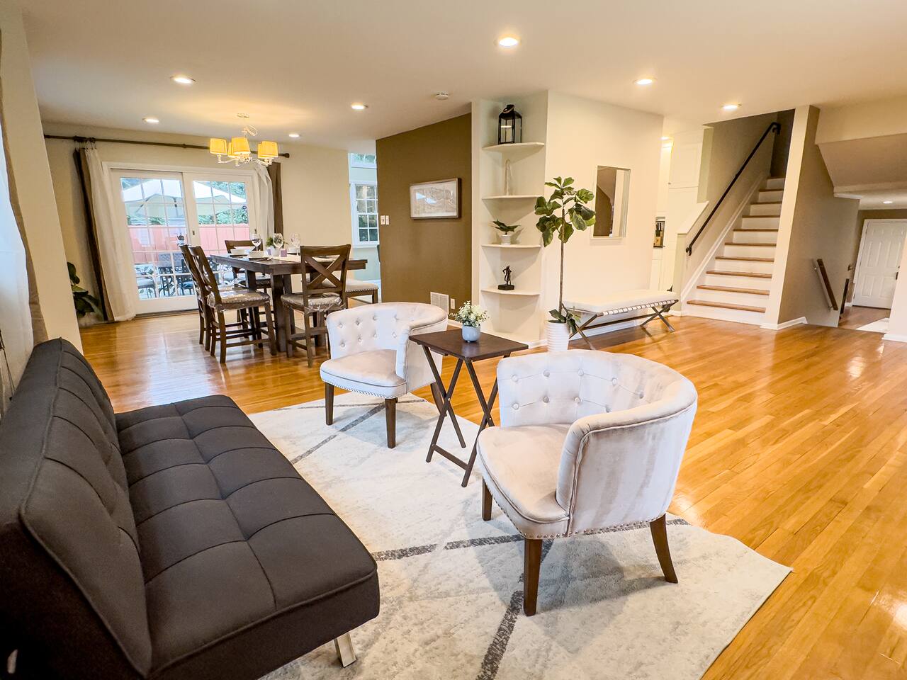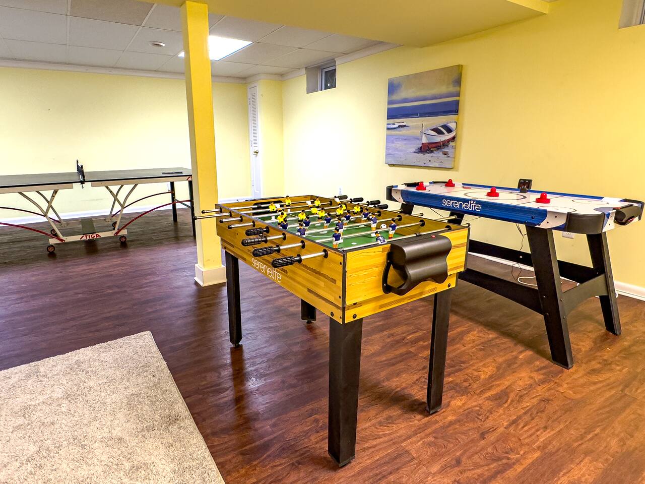 ✓ FREE HIGH-SPEED WIFI ✓ STYLISHLY LAVISH DECOR COMFORTABLE BEDDING ✓ FULL-SIZED CHEF'S KITCHEN ✓ LARGE BACKYARD W/PATIO SET, BBQ, BASKETBALL HOOP, AND FIREPIT ✓ EXCLUSIVE GAME ROOM W/PING PONG, AIR HOCKEY, AND MORE ✓ HIGH-END LINENS ✓ MULTIPLE HD SMART TV'S. ACCESS NETFLIX | DISNEY+| HULU | HBOMAX ✓ WORK AND LAPTOP DESKS ✓ WASHER/DRYER ✓ DRIVEWAY PARKING INCLUDED FOR UP TO 6 VEHICLES This 2,316 sqft home is 2 stories, 4 bedrooms, and three full baths. Minutes to downtown Princeton and University. Modern home with all newer appliances and high-end furniture. Comfortable Living room with 55-inch HD Smart TV. The washer and dryer are located on the first-floor for your convenience. Large backyard with patio set, BBQ, Basketball hoop, and fire pit for fun and relaxation. Game room lounge with ping-pong, air hockey, and multi-game tables. The first floor features a King size bedroom with office space, full bathroom, large dining area, and chef's kitchen. The second floor includes 3 more bedrooms featuring a master suite with King sized mattress, crib, and 2 more bedrooms with queen beds. 3 extra floor mattresses and a sofa for sleeping up to 16 people! Enjoy and relax in our beautiful home perfect for all visitors! WHAT IS INCLUDED: ● Fresh rich towels ● Fresh premium sheets ● Toilet paper/Paper towels ● Premium pillows ● Body wash/Shampoo/Conditioner ● High-speed Wi-Fi ● Smart TV with access to Netflix, Disney+, and Hulu ● Hairdryer ● Iron and ironing board ● Regular coffee, sugar, creamer ● Fully equipped kitchen for all of your cooking needs ● 6 Car driveway ● A/C & heat