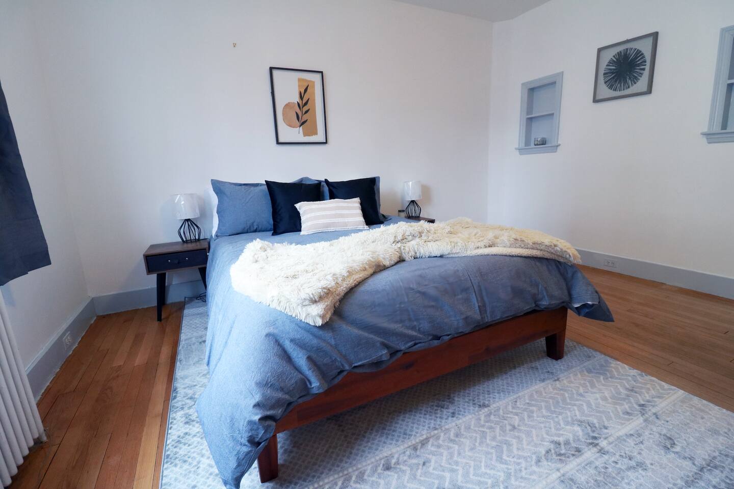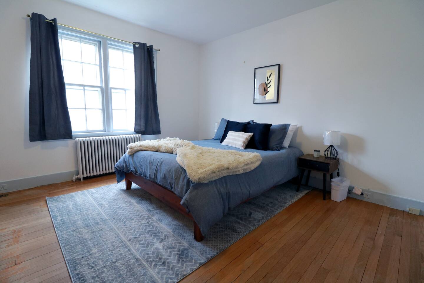 -FREE HIGH-SPEED WIFI -STYLISHLY LAVISH DECOR COMFORTABLE BEDDING -LARGE BASEMENT GAME ROOM -FULL-SIZED CHEF'S KITCHEN -STAND UP SHOWER AND JETTED TUB -BACKYARD ACCESS w/BBQ -HIGH-END LINENS -HD SMART TV. NETFLIX INCLUDED -WORK AND LAPTOP DESKS -WASHER/DRYER -PARKING INCLUDED FOR UP TO 2 VEHICLES. This 1,643 sqft home is on the first floor with private entry. It has 3 bedrooms, two full baths, and a full basement. 9-minute walk to downtown Princeton. Large spacious rooms, all appliances included, and high-end furniture. The master suite includes a king-size bed, 42-inch Roku TV, and a private full bathroom with a stand-up shower. The hallway bathroom has a jetted tub for ultimate relaxation. Living room with 55-inch Smart TV included and beautifully bricked fireplace. Washer and dryer on house level for your convenience. The full basement turned into a game room that includes an indoor basketball game and a 10-in-1 Combo Game Table Set. Backyard with patio, bbq, and furniture set for your relaxation. 3 extra floor mattresses and a sofa for sleeping up to 12 people! (*IMPORTANT NOTE* Please be aware that there is another Airbnb on the second floor and since the home is a bit older there may be times when can you hear their footsteps and talk and they can also hear you as well. So please be aware and mindful of this before booking this property.) Enjoy and relax in our beautiful home perfect for all visitors! WHAT IS INCLUDED: ● Fresh rich towels ● Fresh premium sheets ● Toilet paper/Paper towels ● Premium pillows ● Body wash/Shampoo/Conditioner ● High-speed Wi-Fi ● Smart TV with Netflix, Disney+, and Hulu ● Hairdryer ● Iron and ironing board ● Regular coffee, sugar, creamer ● Fully equipped kitchen for all of your cooking needs ● 2 Car driveway ● A/C & heat